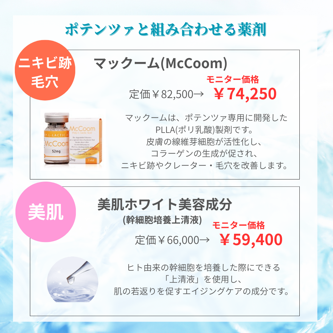 施術名:ポテンツァ【ニキビ跡・毛穴(McCoom導入)】or【美肌(幹細胞培養上清液)】