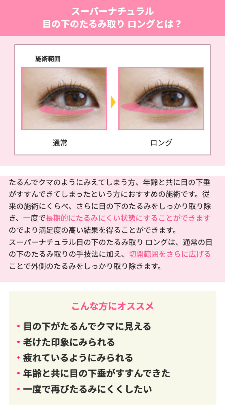 施術名:スーパーナチュラル目の下のたるみ取りロング