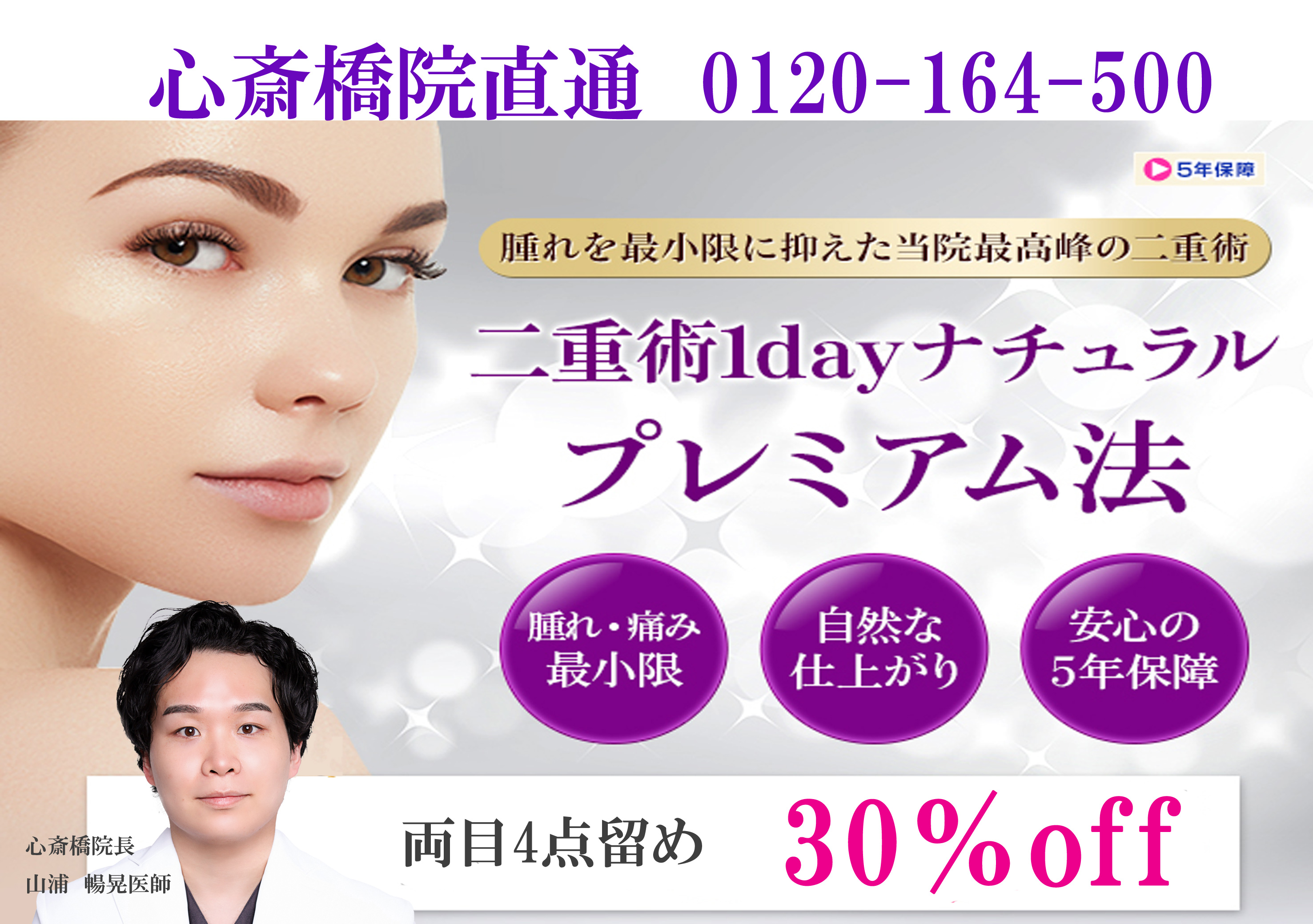 ★30%OFF★ 二重術埋没法4点留め モニター募集 【山浦院長】