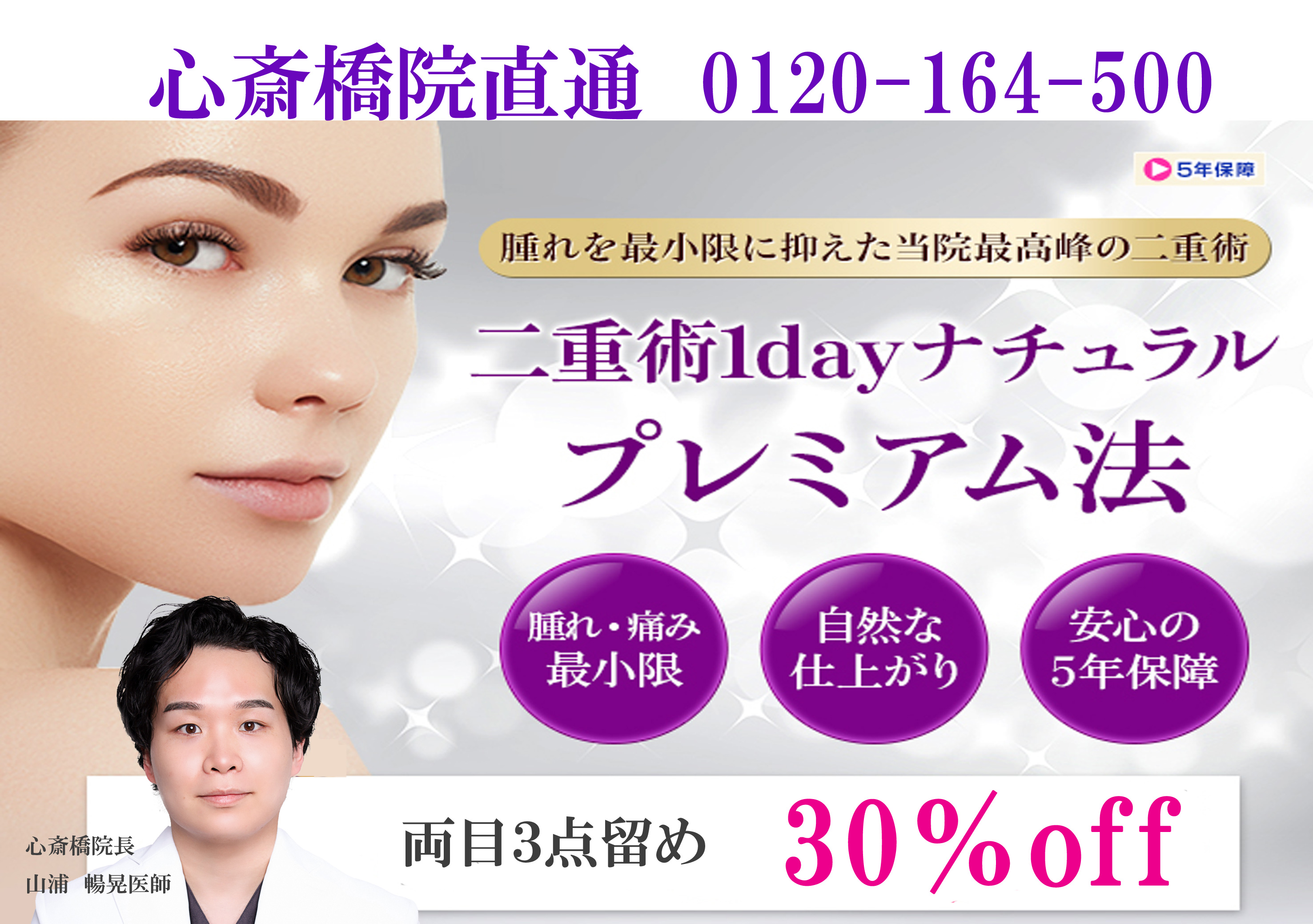 ★30%OFF★ 二重術埋没法3点留め モニター募集 【山浦院長】
