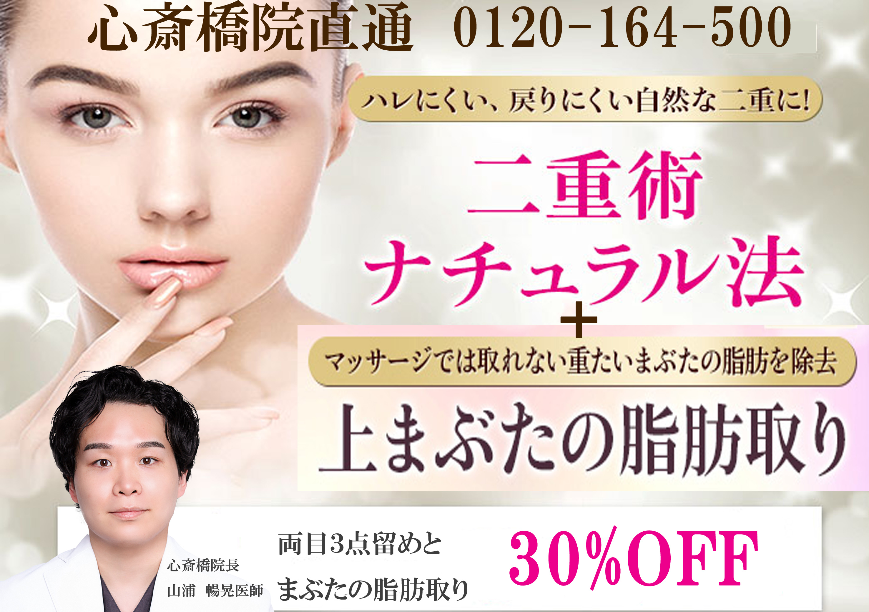 ★30%OFF★ 二重術埋没法+上まぶたの脂肪取り モニター募集 【山浦院長】