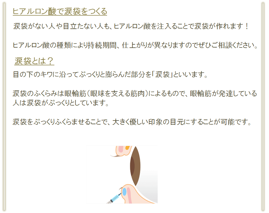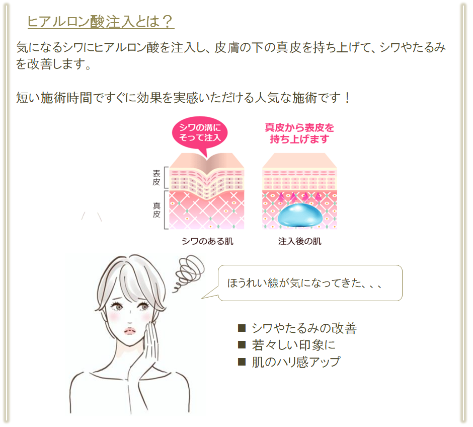 ヒアルロン酸注入でお顔の悩みを改善します。