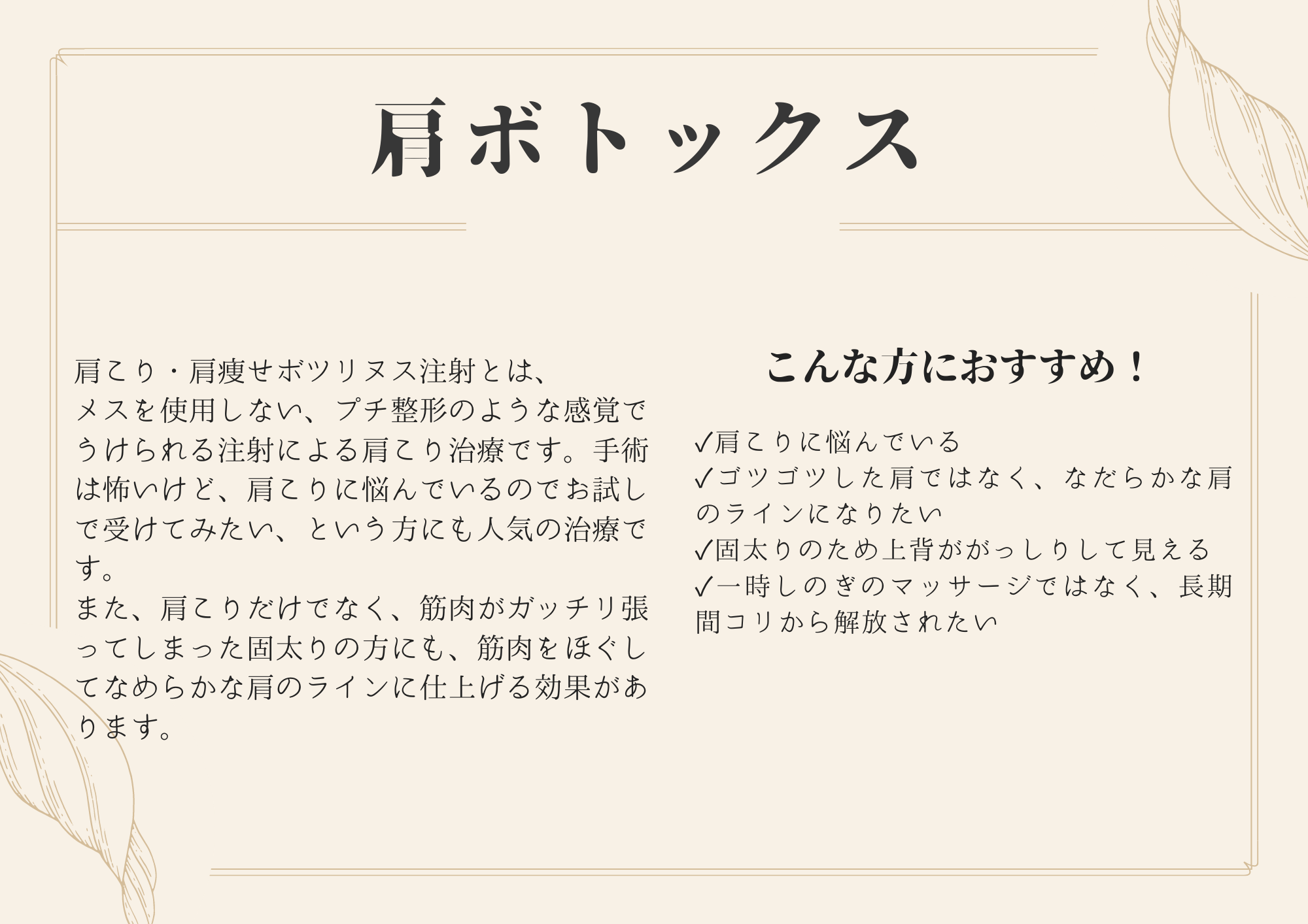 見た目スッキリ!!肩のボトックス しっかり4倍量! 担当医師 長谷川広幸