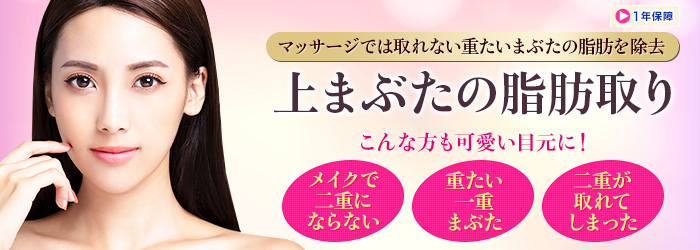 マッサージなどでは取ることのできないまぶたの脂肪を除去して重いまぶたの脂肪を除去します。目つきが悪い、不機嫌そう、眠そうな目をかわいらしく華やかな目もとへ。わずか数ミリの切開で上まぶたの余分な脂肪を取り除きます。二重術と組み合わせることでさらに自然な二重に。