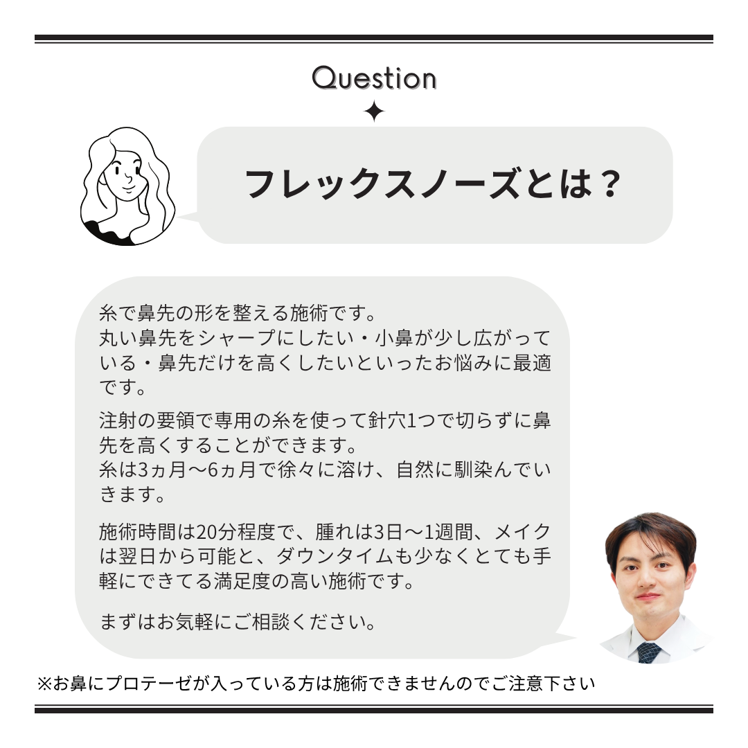 技術指導医でこの価格。和田医師による専用の特殊な糸による“切らない"隆鼻術(フレックスノーズ)
