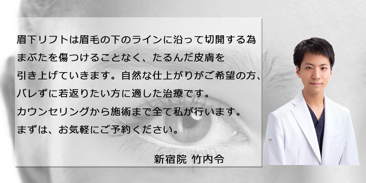 目の上のたるみを改善 新宿院 竹内医師 による 眉下リフト