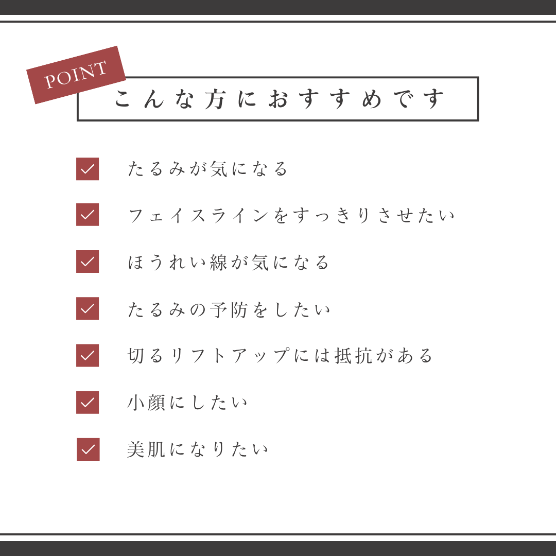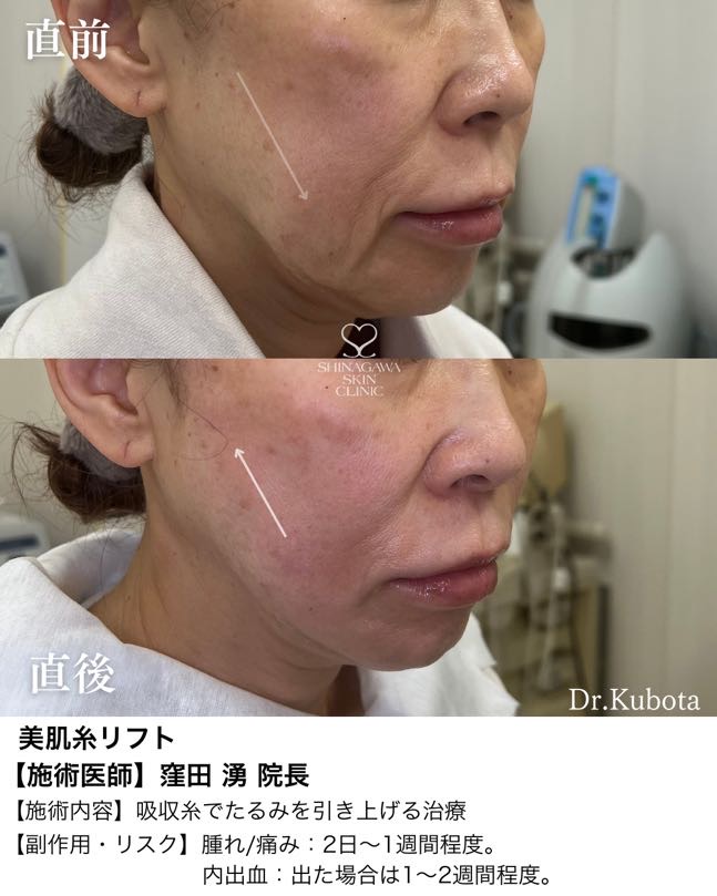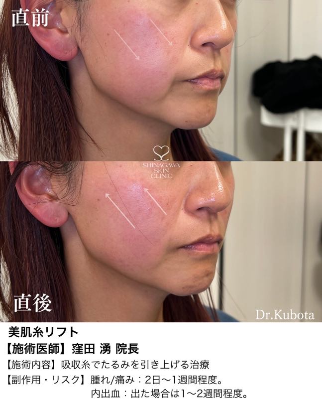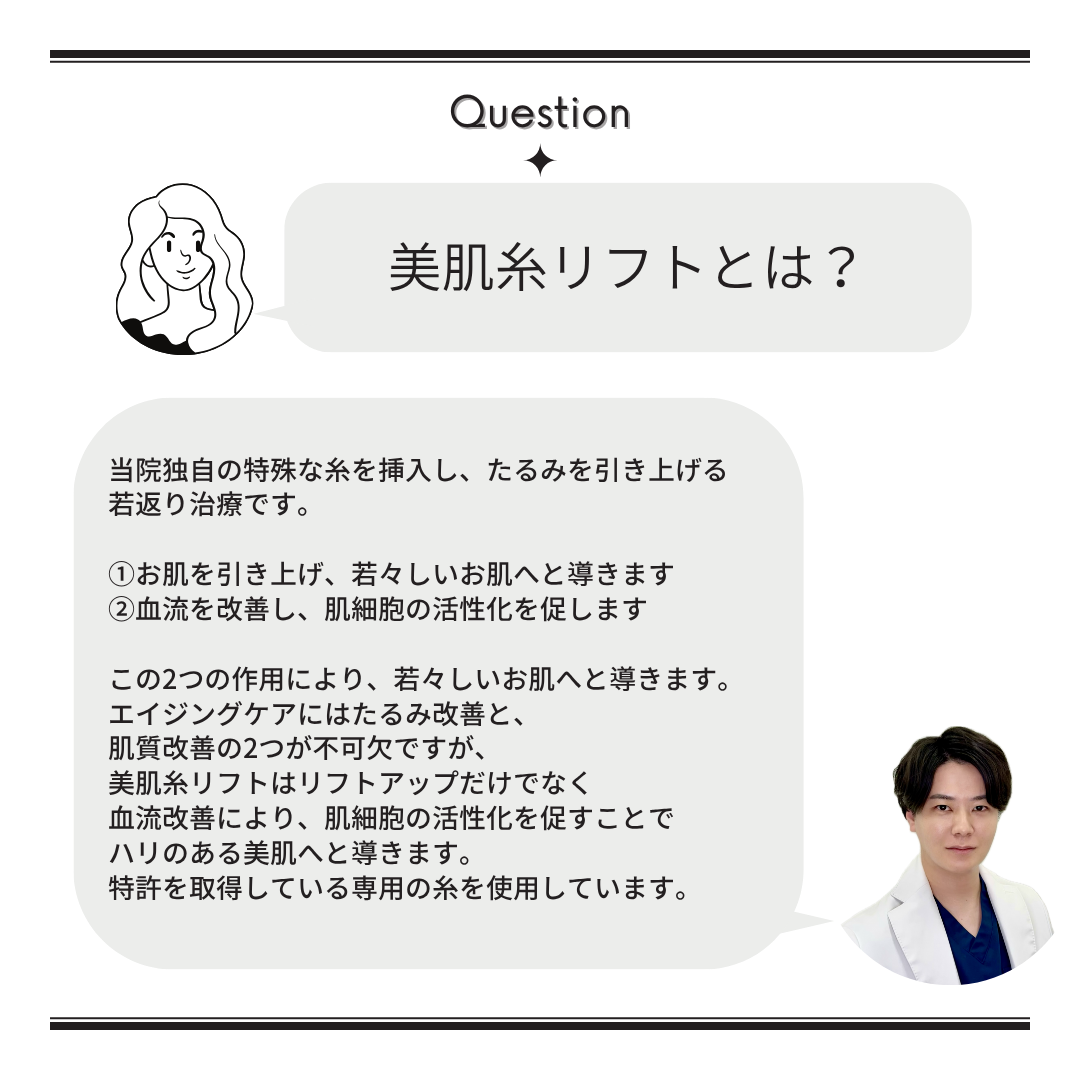 美肌糸リフトお肌を引き上げたるみを改善し肌細胞を活性化する作用でハリや艶のある若々しいお顔へと導きます。