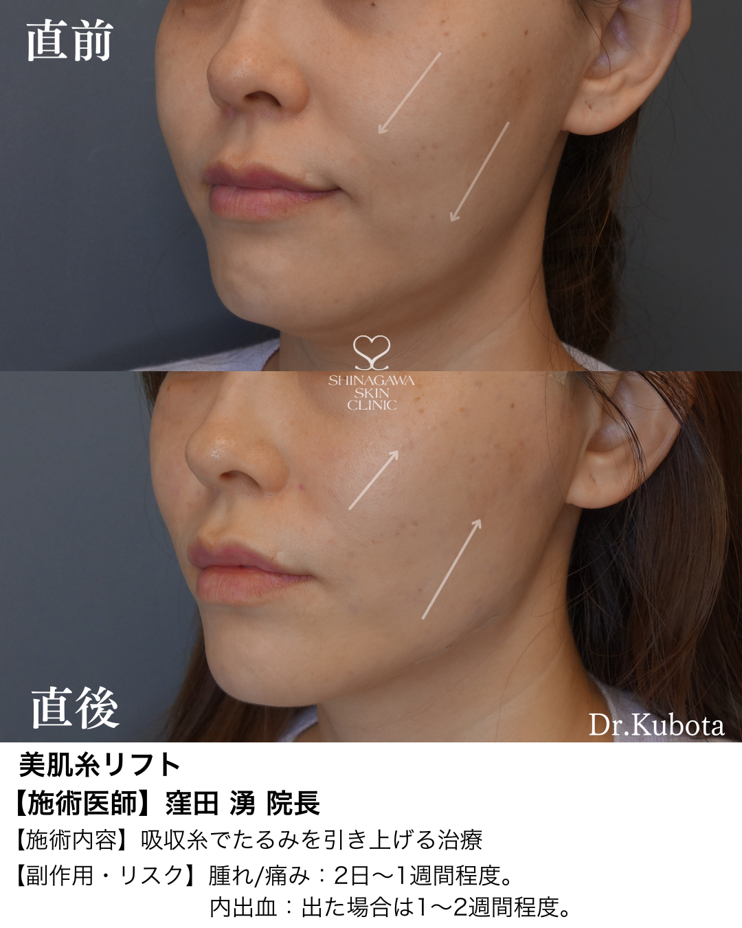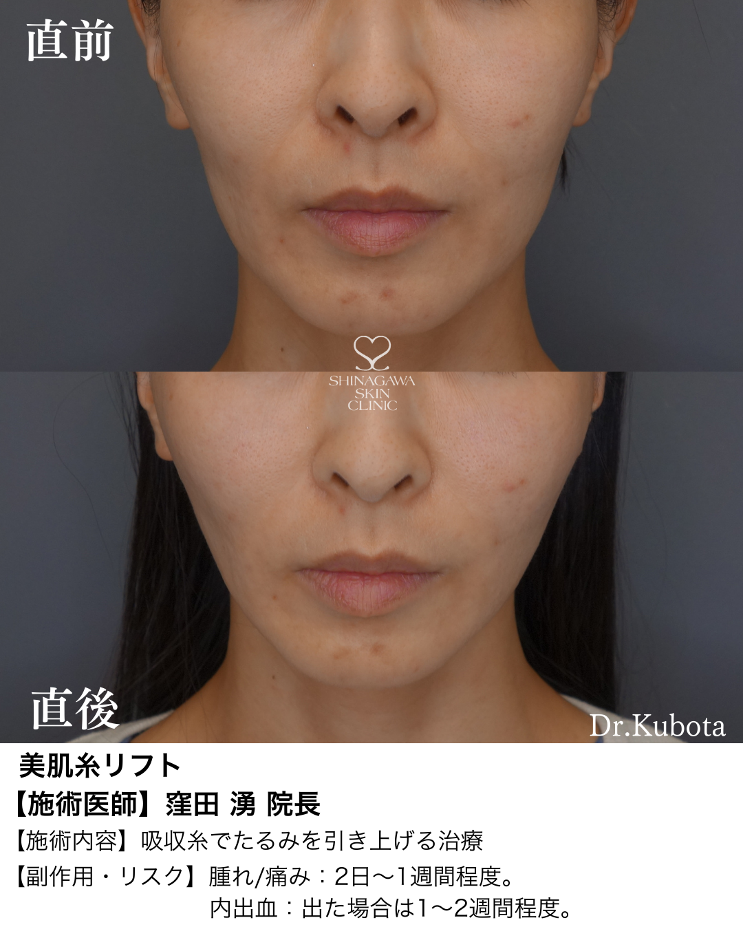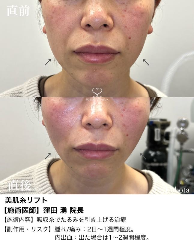 美肌糸リフトお肌を引き上げたるみを改善し肌細胞を活性化する作用でハリや艶のある若々しいお顔へと導きます。