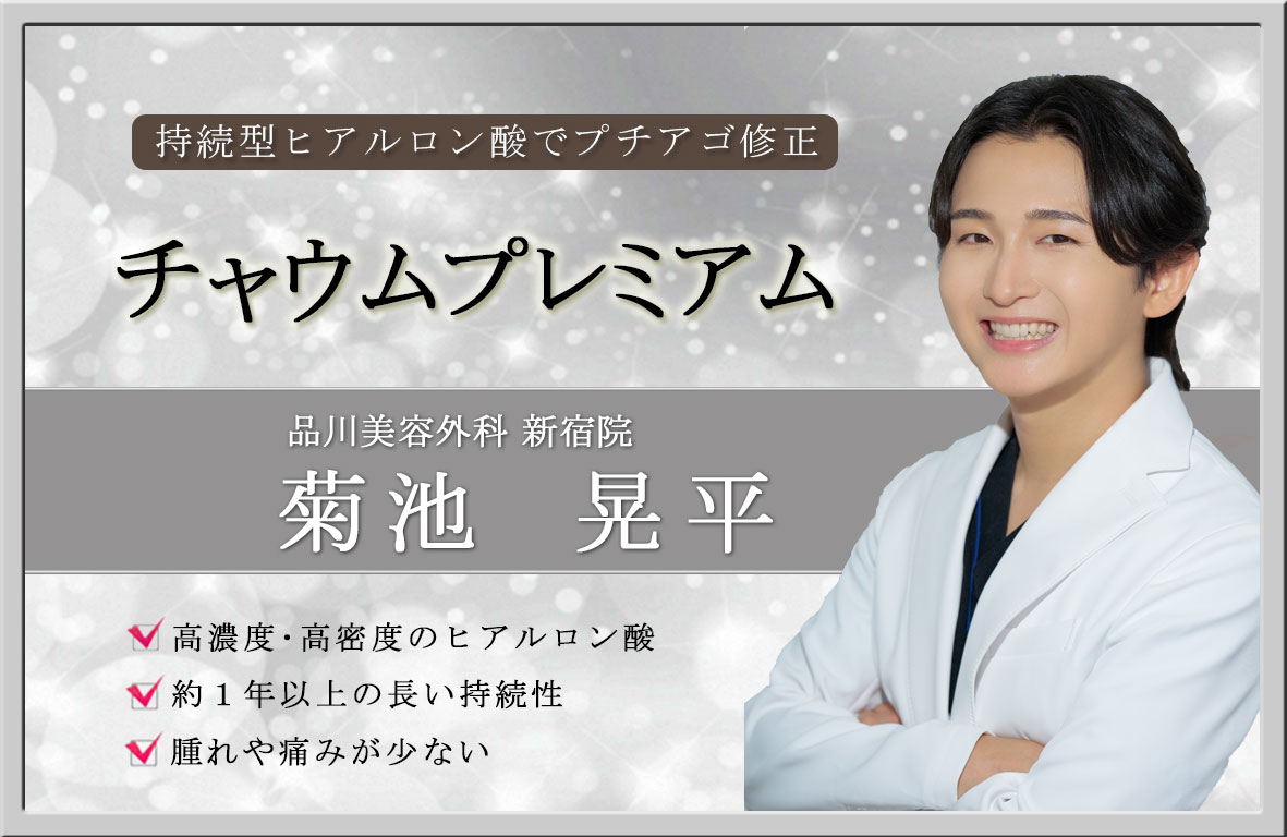 ヒアルロン酸(チャウムプレミアム)でアゴの形を整える 新宿院 菊池医師 による プチアゴ修正