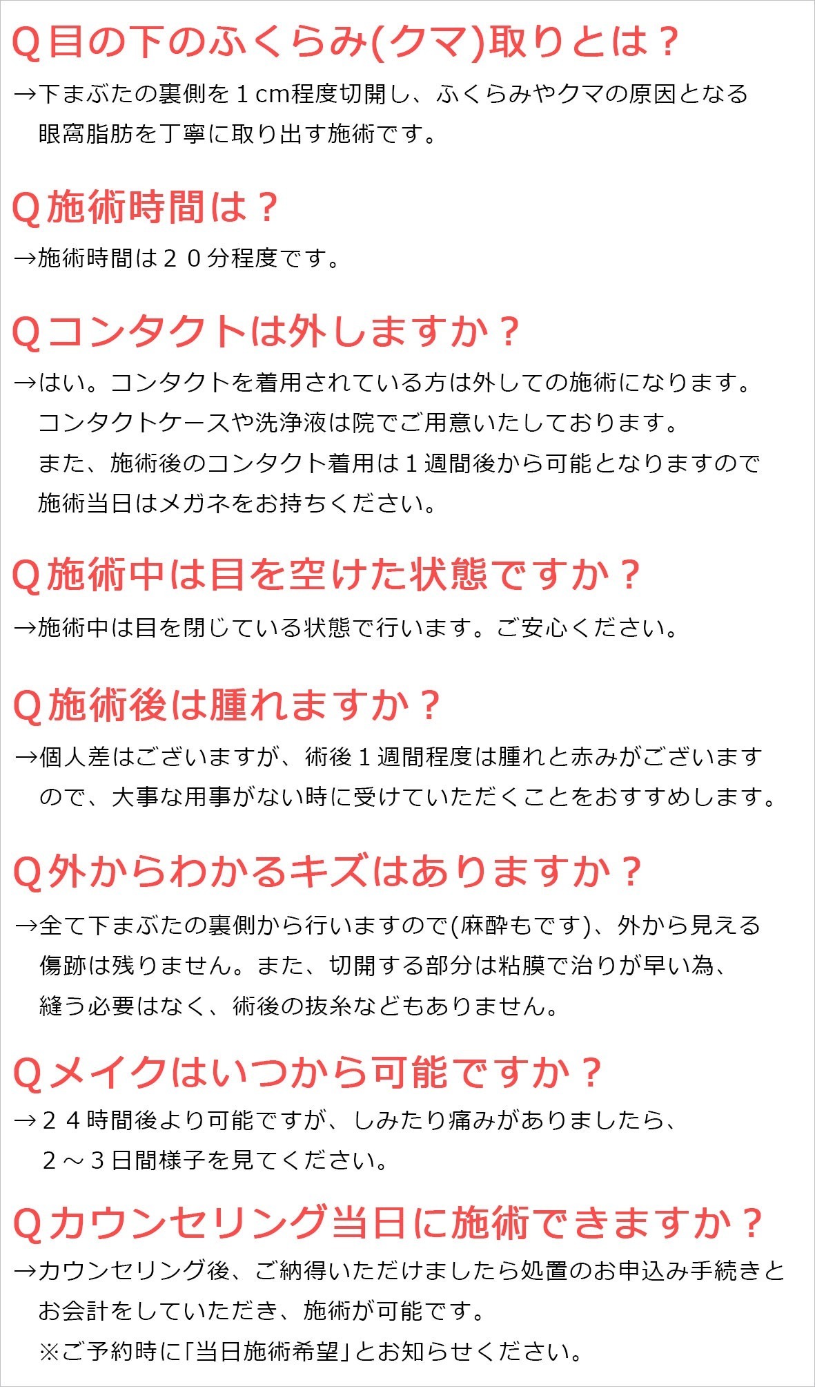 新宿院 福島医師 による 目の下のふくらみ(クマ)取り