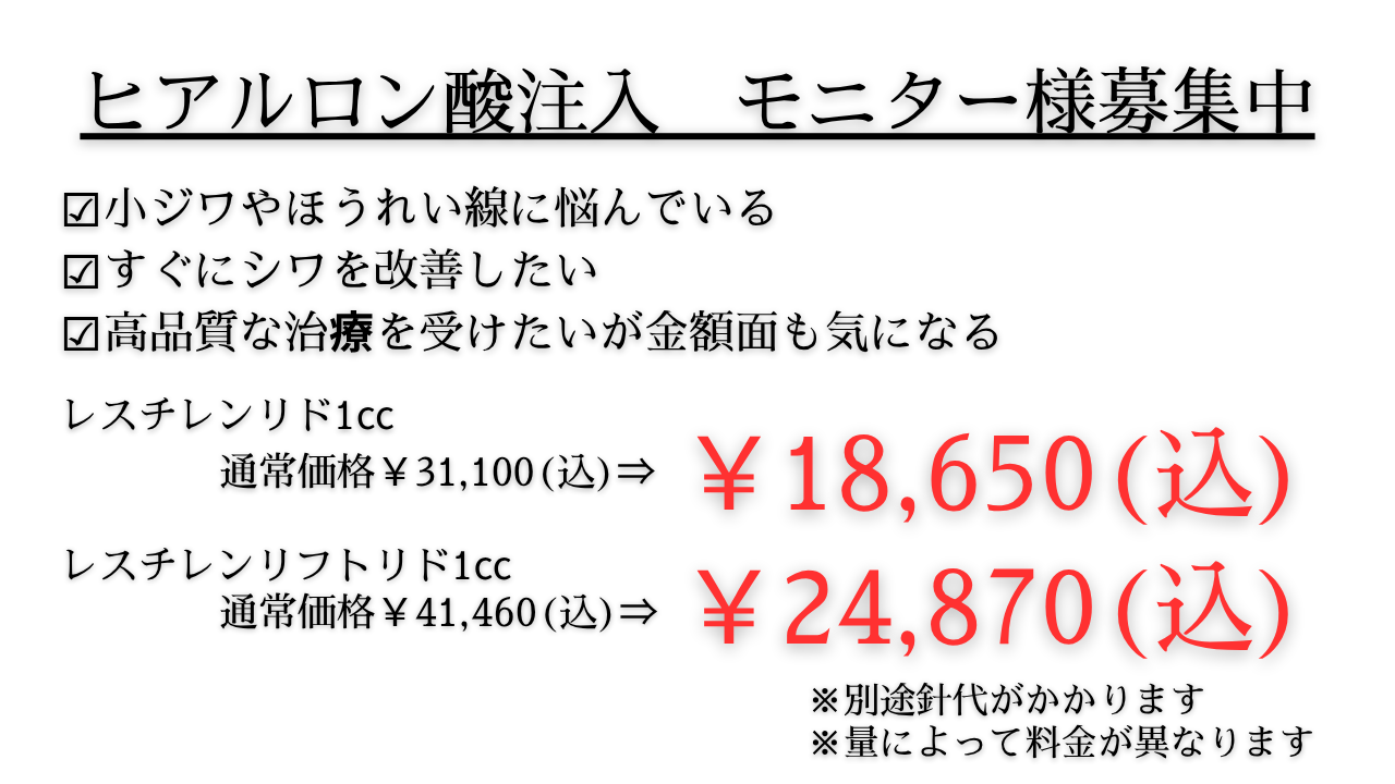 【池袋院】美容外科専門医・川野先生のヒアルロン酸モニター様大募集