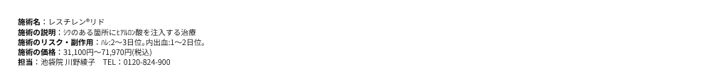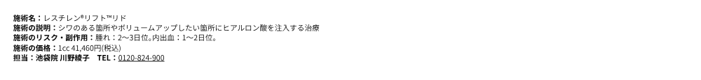 施術名:ヒアルロン酸注入(レスチレンリド・レスチレンリフトリド)