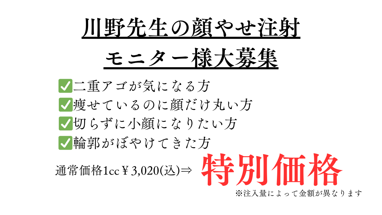 【池袋院】美容外科専門医・川野先生の顔やせ注射 モニター様大募集