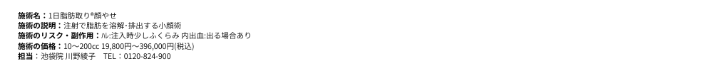 施術名:1日脂肪取り顔痩せ