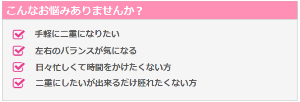 医療用の糸で瞼を留めることで二重ラインをつくる施術です。※表示価格は両目2点留めの金額です。お気軽にご相談ください!