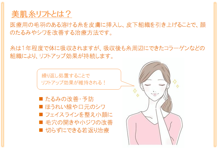 溶ける糸を挿入してたるみを引き上げ肌質を改善する施術です