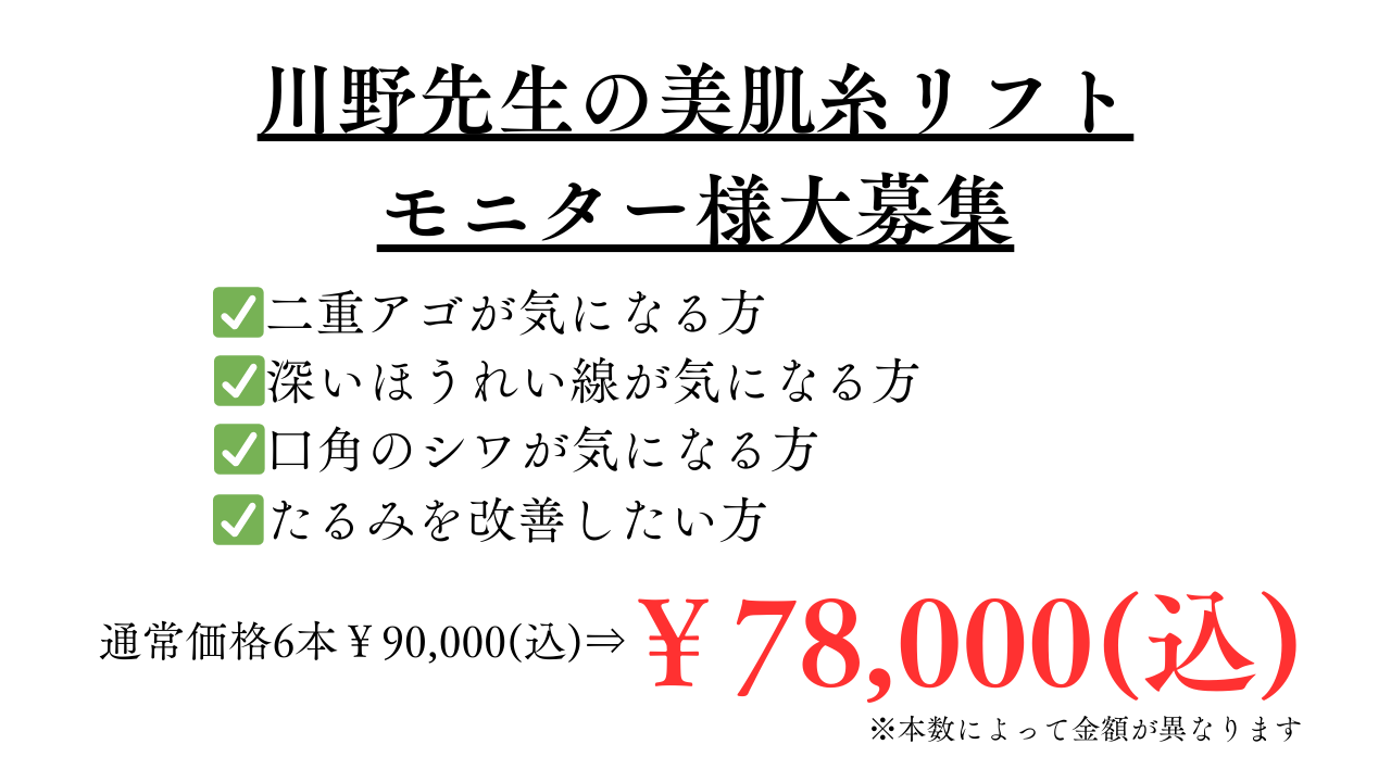 【池袋院】美容外科専門医・川野先生の美肌糸リフト モニター様大募集