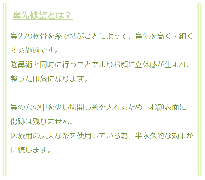 鼻先の軟骨を縫い合わせて鼻先を小さくする施術。