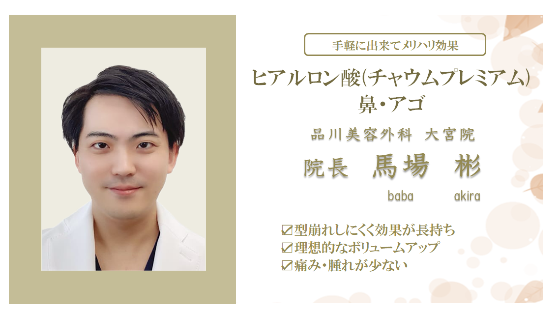 【大宮院】美容外科院長 馬場医師【鼻・アゴのヒアルロン酸注入(チャウムプレミアム)】