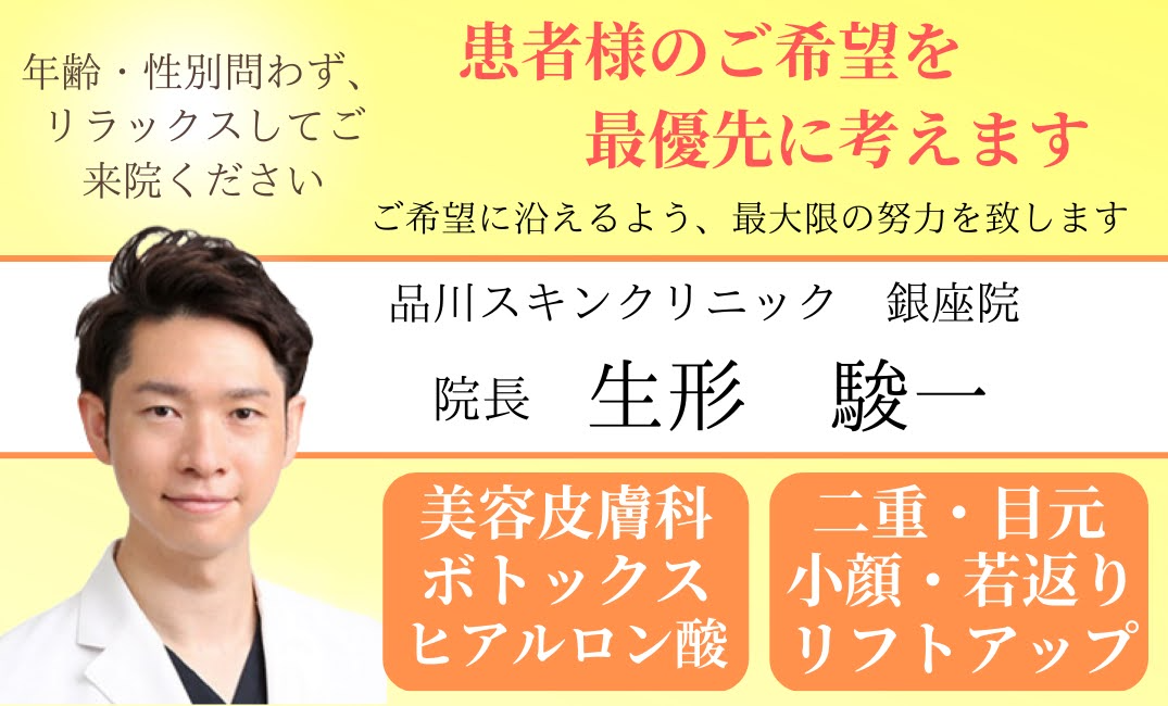 - 東京都中央区銀座1-3-9 マルイト銀座ビル3F(美容外科) / 4F(スキンクリニック) ※総合受付は4Fです