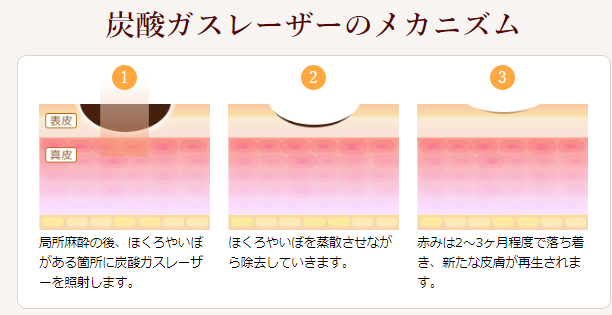 炭酸ガスレーザー:レーザーによるホクロ・イボ除去の治療。