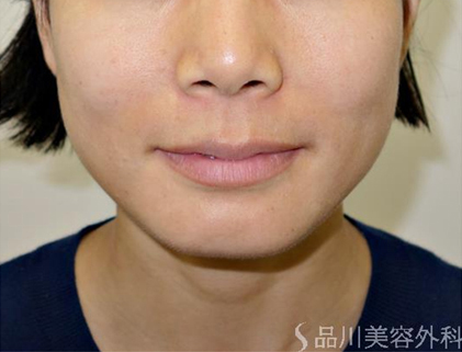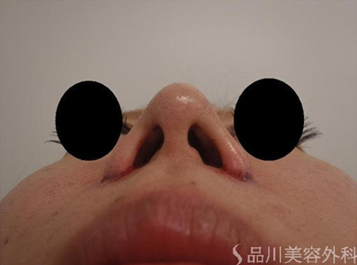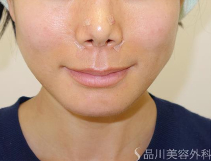 この症例では、ハの字型の小鼻の広がりを抑えて印象を薄くしています。