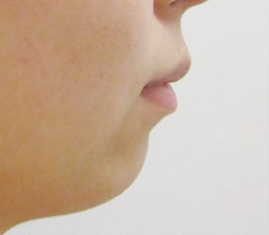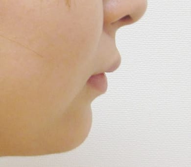 Eライン(エステティックライン)は、鼻先・唇・アゴ先を結んだラインがキレイに一直線になるのが理想とされており、この場合アゴが少し足りないのが分かります。