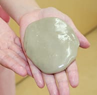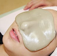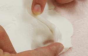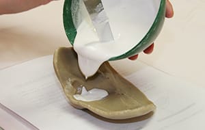 顔の形に固まった自由樹脂に石膏を流し込みます。約10分で石膏が固まり、正確な顔型が完成します。