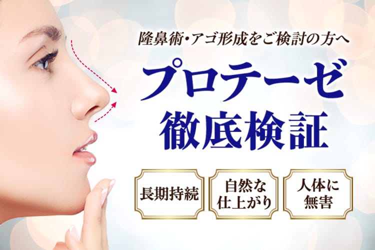 プロテーゼとは、シリコンでできた医療用の人工軟骨のことで、鼻やアゴに挿入することで鼻に高さを出したり、アゴの形を整える役目を果たします。