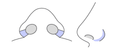 小鼻縮小:鼻翼の内から外にかけて皮膚を切除して小鼻を小さくする施術。