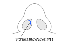 手術はすべて鼻の中から行います。ほんの数ミリ切開するだけですので、気になるキズ跡は隠れてわからなくなりますのでご安心ください。
