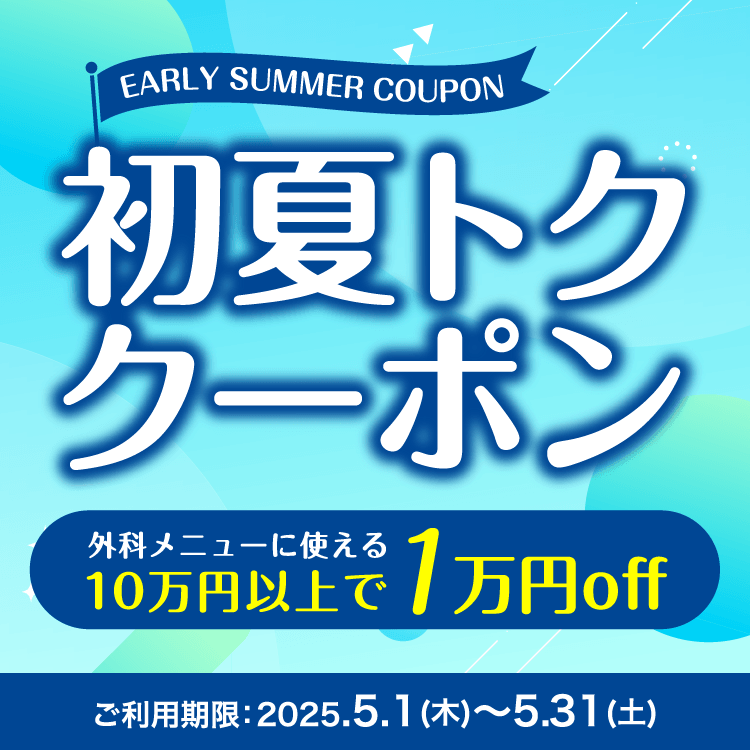 初夏トククーポン 外科メニューに使える10万円以上で1万円off ご利用期限:2025.5.1(木)~5.31(土)