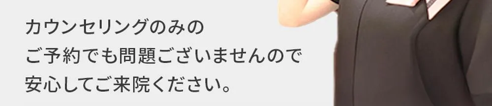 ※予約ページからの申し込みの場合、当クリニックよりお電話またはメールでご予約の確認をさせていただくことがあります。