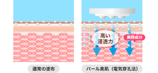肌に負担のない美肌トリートメントで、エレクトロポレーション(電気穿孔法)=IonWave™テクノロジーにより肌の内部まで美容液をしっかり浸透させます。