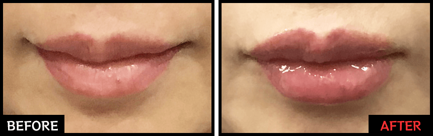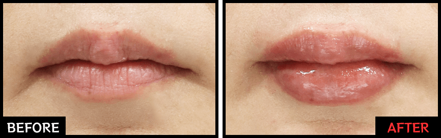 当日からふっくらした唇になります。リップクリームやグロスの塗布は当日でも可能です。刺激のあるグロス等は翌日からとなります。