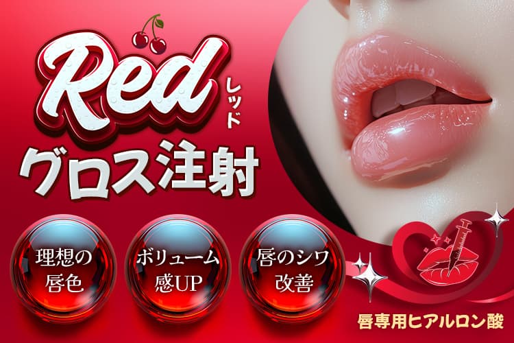 ご好評いただいていた「グロス注射®」がこの度ヒアルロン酸に色がついた「レッド・グロス注射」にアップグレードしました。