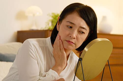骨格によるほうれい線への影響は自力での改善が難しい部分もありますが、顔全体の筋肉を鍛えたり、たるみを予防するスキンケアを継続したりすることで、見た目の印象を和らげることが可能です。