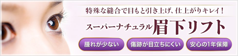 眉下リフトは、眉毛の下ギリギリのラインを切開する、目元の若返り治療です。目のまわりや眉毛の下はたるみの出やすい箇所ですが、たるみを取り除くことで若々しい印象を取り戻します。