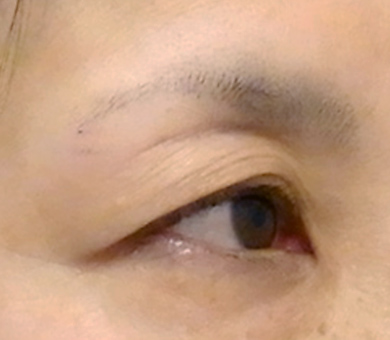 目元の印象を変えることなく、自然にたるみを改善します。切開跡は眉毛に馴染んで徐々に目立たなくなります。
