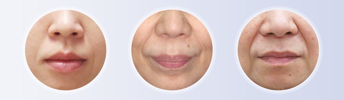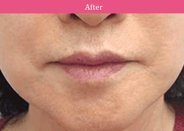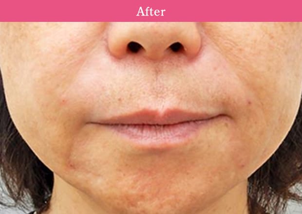 水玉スキンは、特別なマイクロニードルを使って肌にとても細かい穴をあけ、そこから成長因子を浸透させていき、お肌の再生を促します。この方法によって、コラーゲン増生が活発になり、ほうれい線が改善されます。治療後は、肌質改善効果により、全体的に若々しくなってきます。