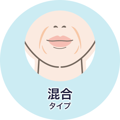 原因は1つではないため、お肌の改善やたるみの引き上げ、ボリュームアップなどの様々な治療を併用することをおすすめします。一方、混合型の中でも特に対処が難しいのは、頬の脂肪が厚いタイプです。