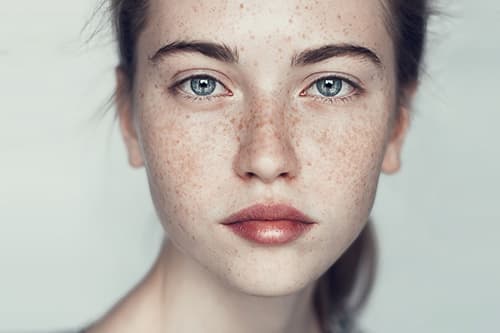幼児期から、小さな斑点が顔全体に散らばったようにでるものです。鼻、ホホなどに左右対称に分布し、ひとつひとつの斑点の大きさはほぼ均一です。そばかすは遺伝的なものがほとんどで、多くの場合思春期ころになると消えてしまいます。ちなみに、そばかすのある人は乾燥肌であることが多いです。