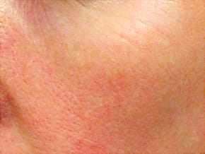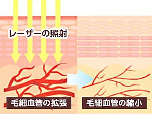 肌表面近くにある毛細血管の拡張と増殖により、血流が増大した結果、肌に見える赤みが強く見えるようになります。