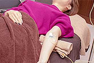 腕の消毒をした後、リラックスした体勢で20~30分ほど点滴を行います。点滴の間は当院ナースが何度かお声かけにまいります。