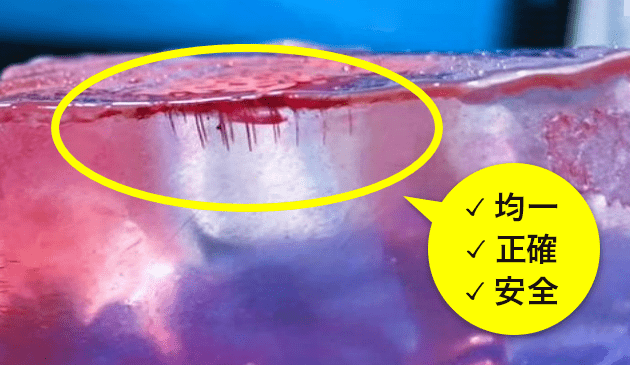 真空バキューム機能を搭載していることで肌に機器を当てた時、肌を吸引しながらニードルを挿入するためチップと肌を密着させることができます。この機能によって、施術難易度が高い部位もアプローチ可能に。また、真空状態のみにRFエネルギーが照射される安全機能付きです。