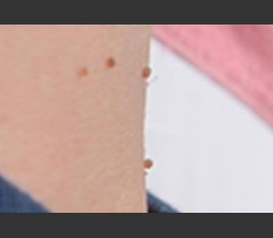 炭酸ガスレーザーはホクロだけでなく、イボの除去にも効果的です。除去後はその部分が少し赤くなりますが、赤みは2~3ヶ月程度で落ち着きます。その後は白いニキビ跡のような跡が残る場合がございますが、ほとんど目立ちませんのでご安心くださいませ。