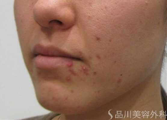- 同じ場所でニキビが繰り返されると、皮膚深部の組織を壊すので、ニキビが治っても跡が残る