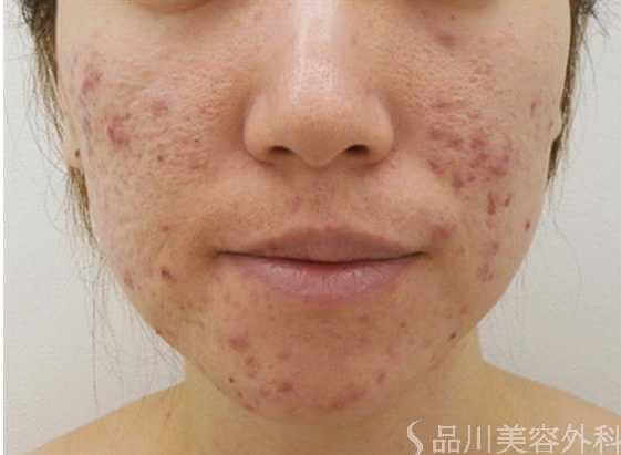 一番やっかいなタイプのニキビ跡です。赤ニキビの状態が悪くなって炎症が進行し、皮膚組織まで破壊され、皮膚が回復せず凸凹状態となって肌に残るのです。また、自分でニキビを潰してしまった場合にも、皮膚が傷つき、凹凸になることがあります。厳密にはニキビ跡ではありませんが、混同される場合も多いです。