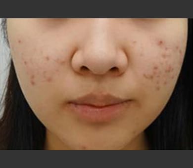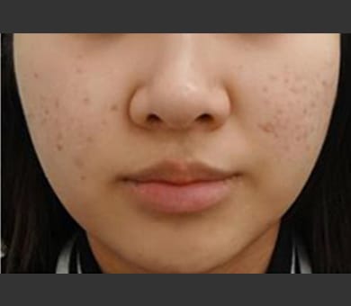 ニキビの炎症がさらに進んで毛穴の壁が壊れると、毛穴が広がり穴の開いたような状態になることも。この状態をニキビ跡(クレーター)と呼び、一度クレーターになってしまうと化粧品等でのセルフケアでは改善することが難しいため、皮膚科での治療が必要になる場合もあります。早めの受診をご検討ください。