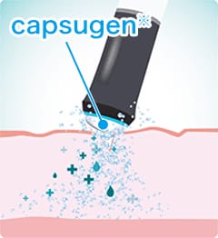 先端チップ(capsugen)と美容成分が、肌表面に接触することで起きる化学反応により、お肌に優しくマイルドに角質を除去します。